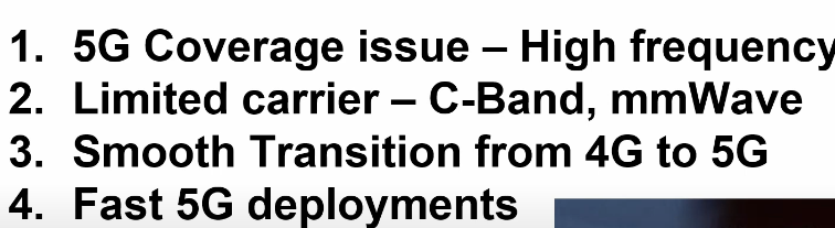 요약하자면, 5G는 C-Band, mmWave와 같은 고주파수를 사용하기 때문에 커버리지가 좁고, 캐리어가 한정되어 있다. 이런 상황 속에서 4G에서 5G로 부드럽게 통신 규격을 전환해야했고 동시에 빠르게 5G를 선보여야 했다.