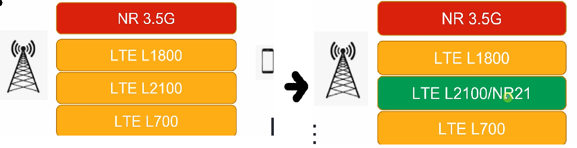 여기서 L1800, L2100, L700은 LTE가 어떤 중심 주파수로 주파수 대역을 가지고 있는 지를 표현한 것이다. 예로 L1800은 LTE 중심 주파수가 1800MHz인 주파수를 뜻한다. (NR도 비슷하게 이해하면 된다.)