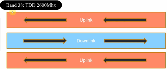 TDD는 하나의 밴드를 UL과 DL이 번갈아 가면서 사용하여 Duplexing을 가능하게 만들어 준다. 따라서 DL과 UL은 사용하는 주파수 대역이 같다!