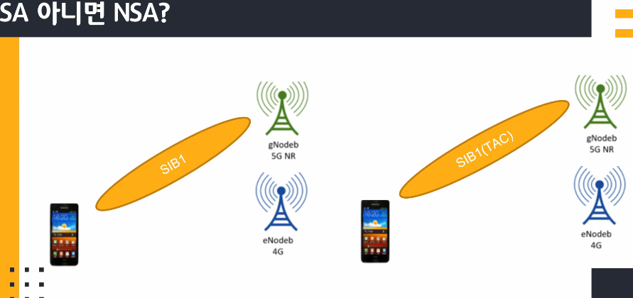 위 그림에서 오른쪽은 gNB가 SIB1이 TAC을 포함하는 신호를 보내고 있지만 왼쪽은 그렇지 않다.