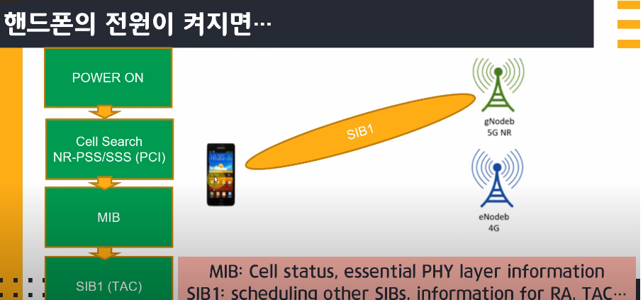 단말이 새로운 네트워크에 연결하려고 하면 우선 Cell을 찾기 시작한다. (Cell은 eNB 또는 gNB가 담당하는 지역) Cell 중에서도 신호가 가장 센 Cell을 찾으려고 하며, 찾은 다음엔 Cell에 대한 기본적인 정보를 얻을 수 있다.