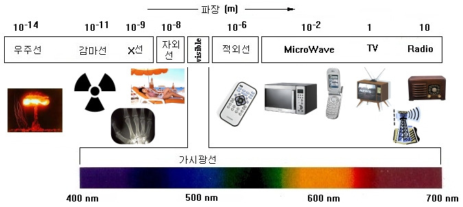 전자기파의 종류는 정말 다양한데, wavelength에 따라서 각 파들이 나뉜다.