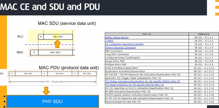 위 그림은 MAC에 대한 SDU, PDU, CE에 대한 설명을 하고 있다. SDU, PDU는 정말 쉬운 개념이다.