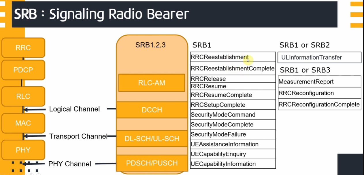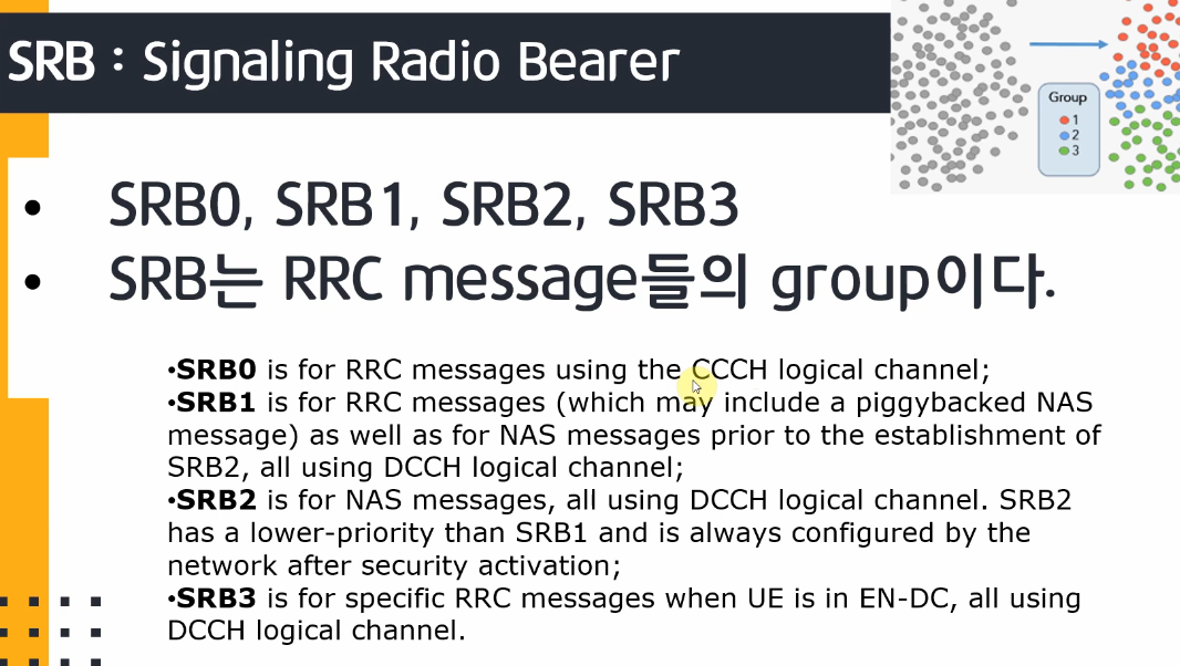 우선 SRB를 숫자별로 나누는 이유는 RRC message들을 Group 지어놓기 위함이다. 각각 다른 message들을 전송할 수 있도록(?) 신호 통로를 나눴다고 생각하면 좋을 것 같다.